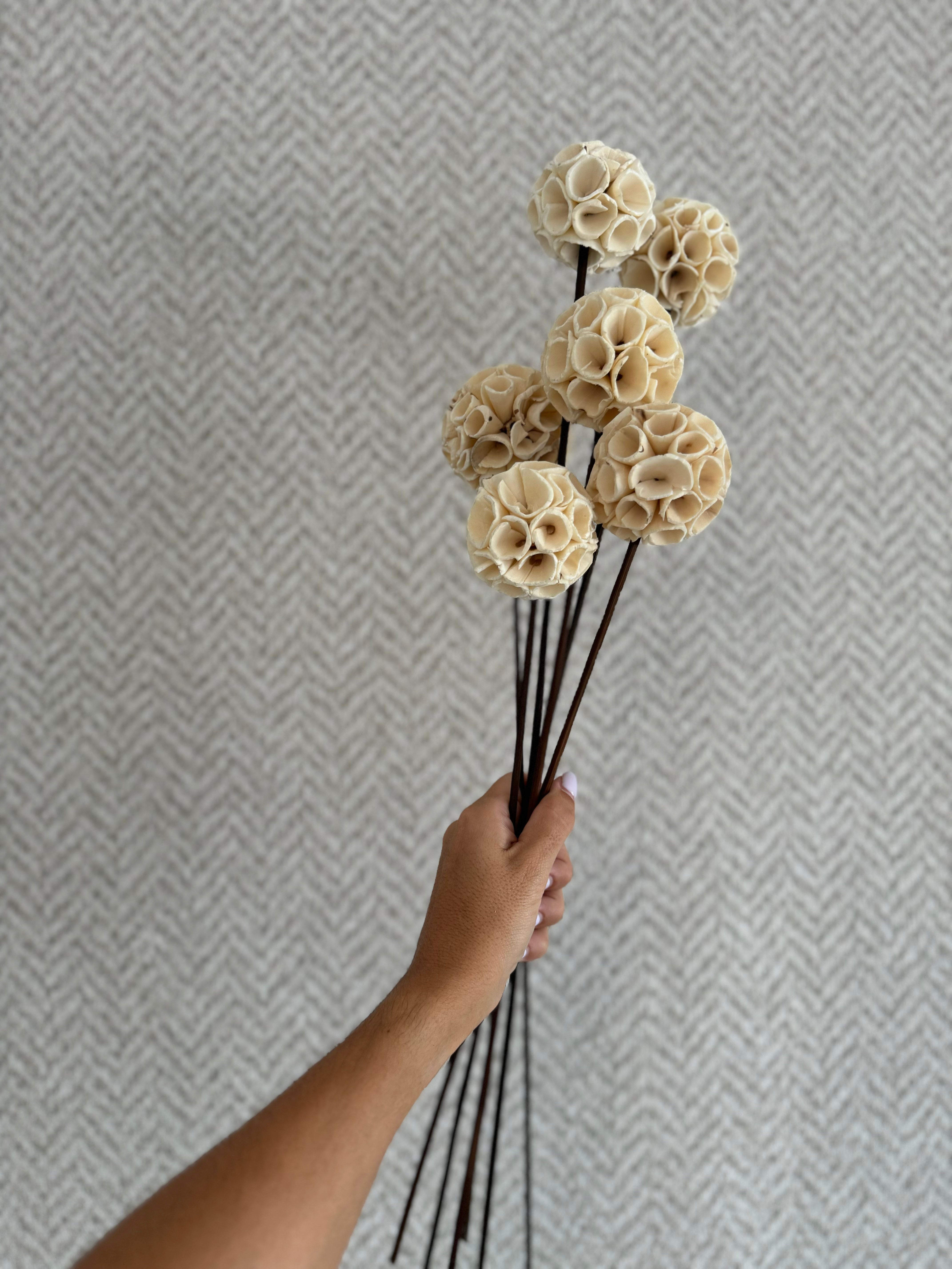 Aunque está hecha con materiales naturales no es una flor preservada, pero no por ello se merece un espacio peor. ¡De un blanco roto quedará estupenda allá donde la ubiques!. Córtala si tu jarrón no es muy alto, quedará igual de bonita. Úsalas todas juntas o aprovecha el ramillete para expandir tu casa de inspiración.